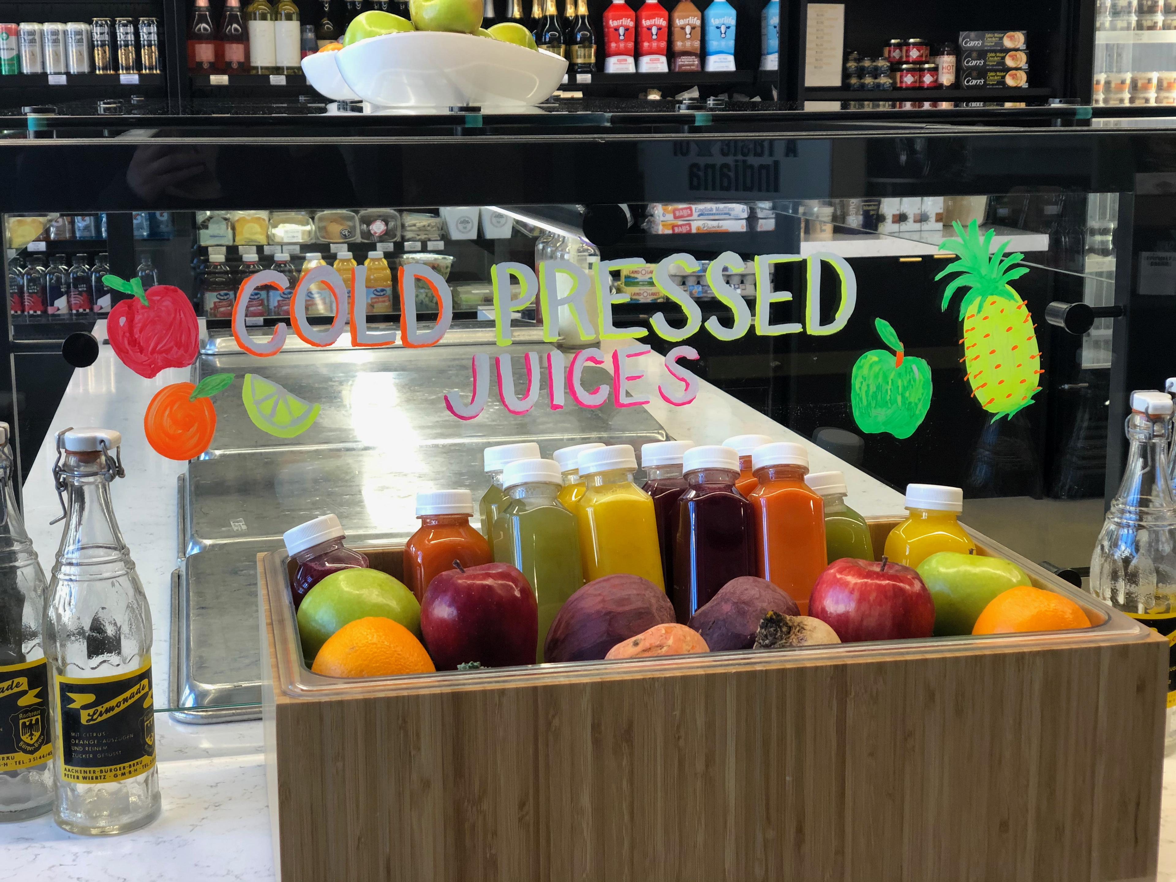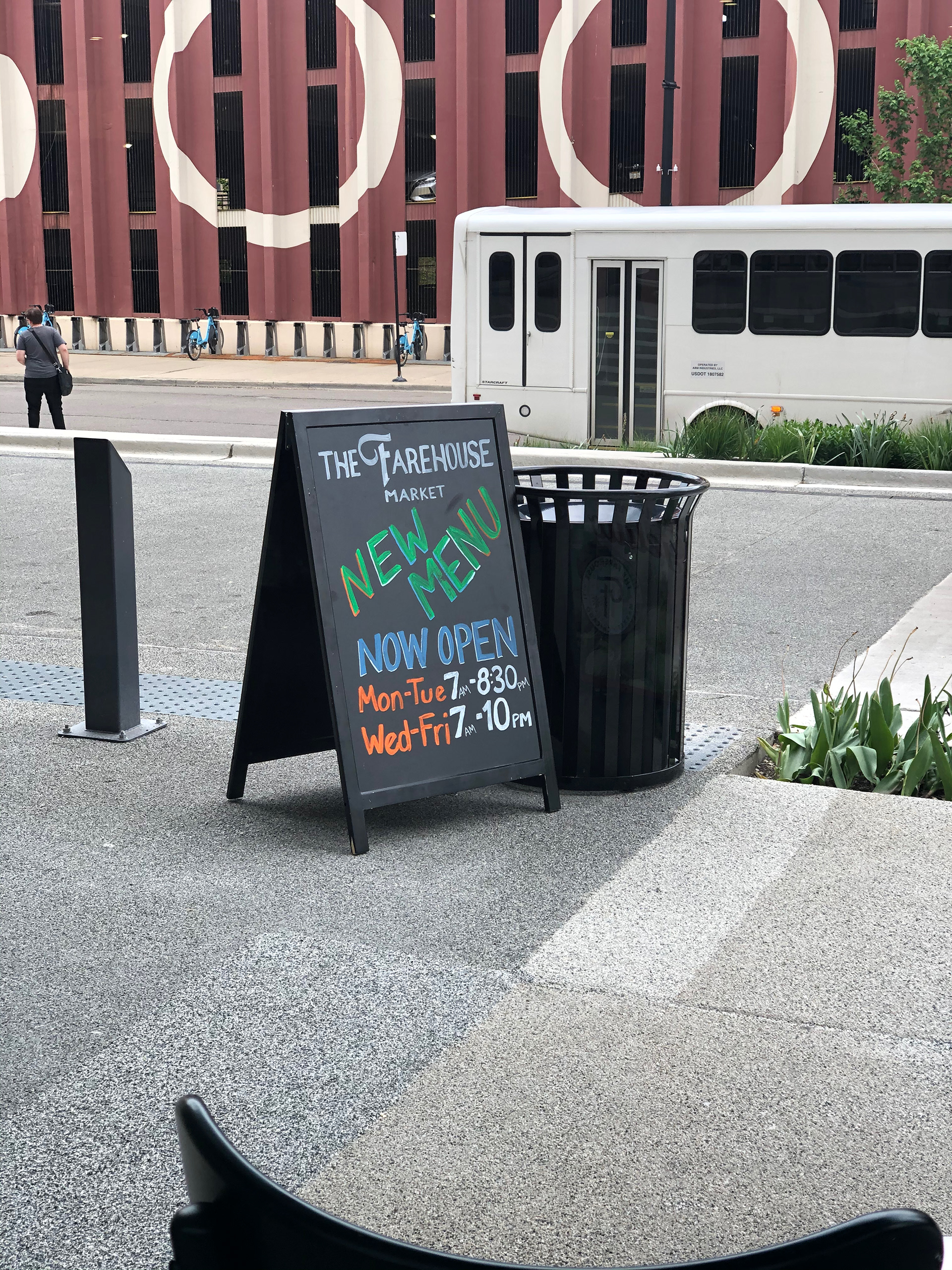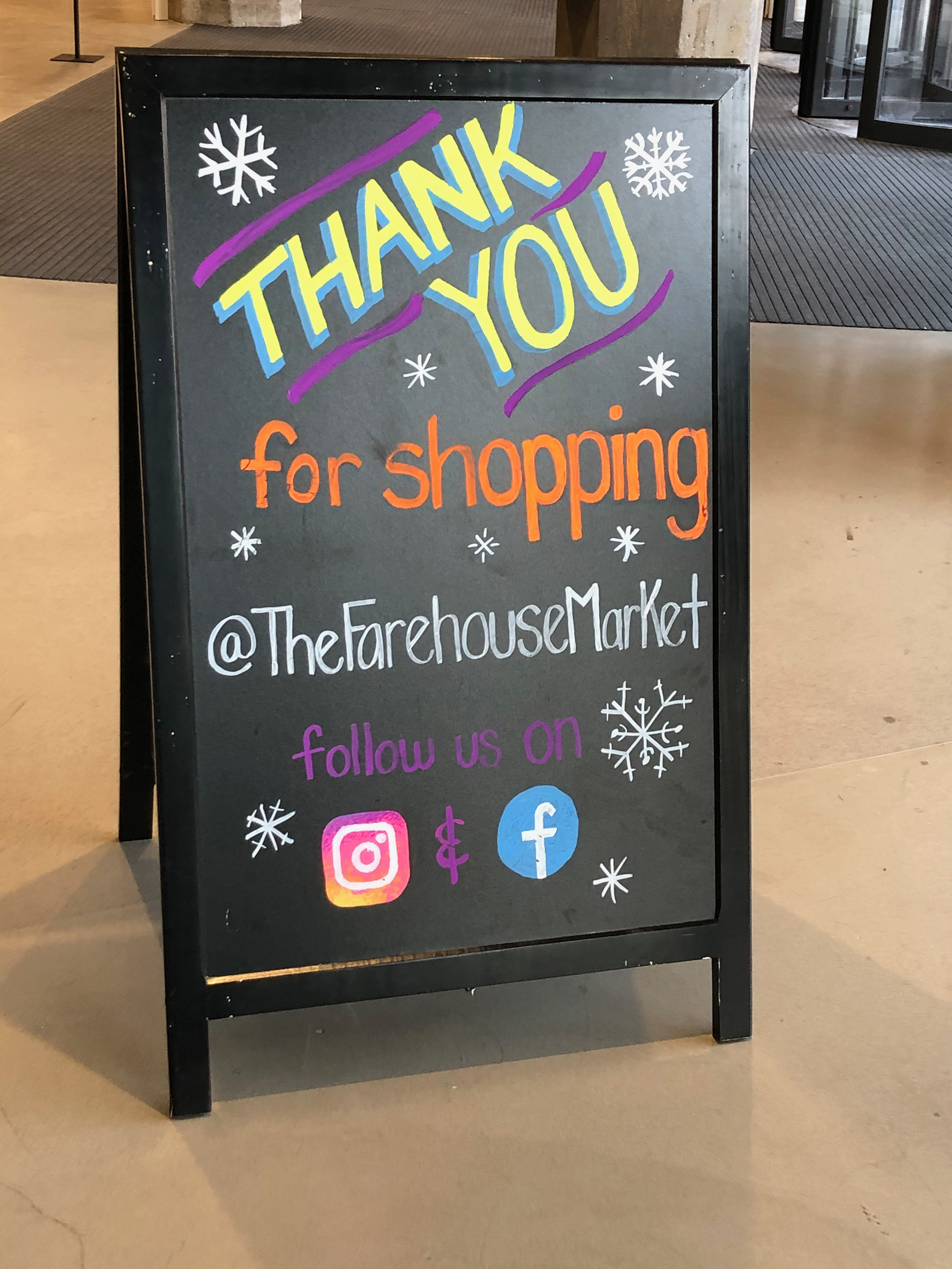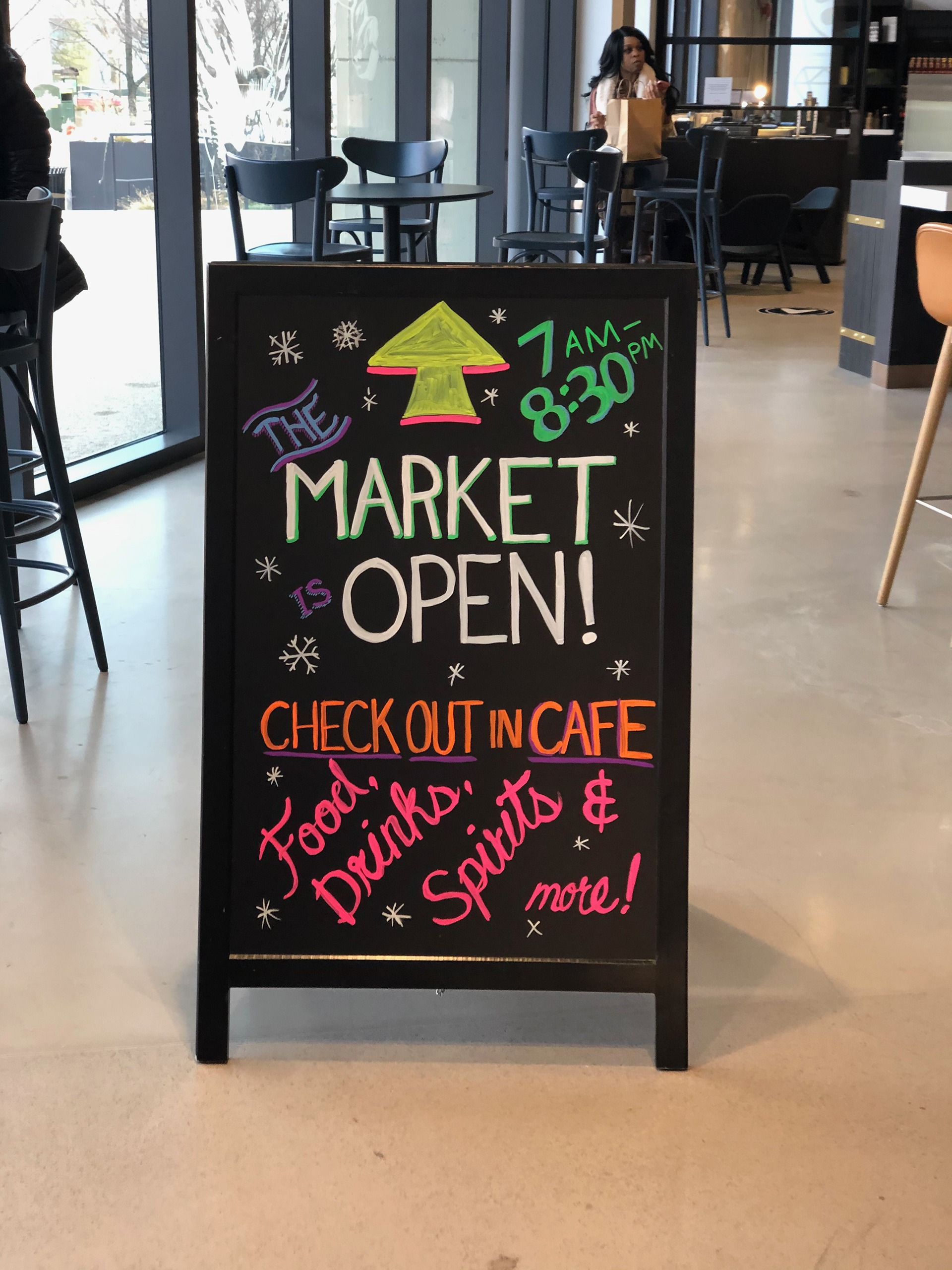 The Farehouse Market food hall in the 600 W Chicago building, included several areas where they needed quick hand to create custom announcements in their servery—on both chalkboard panels and glass sneeze guards.